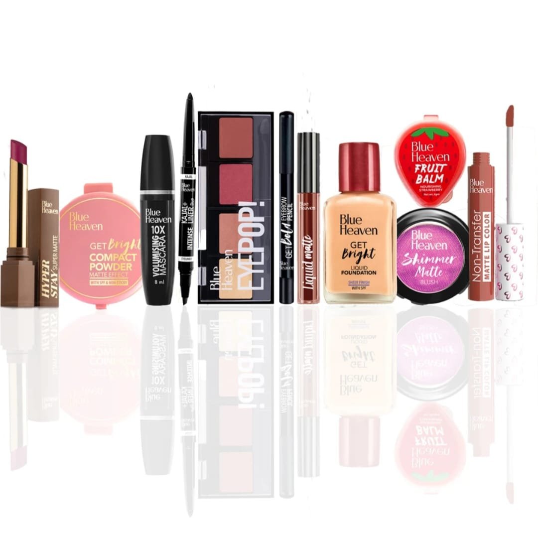 Complete your glam look with the Blue Heaven Bridal Makeup Kit, an all-in-one beauty collection designed for weddings and special occasions. This premium kit includes essential face, eye, and lip products to create a flawless, long-lasting finish. Perfect for brides or anyone who loves a full makeup set in one stylish box.