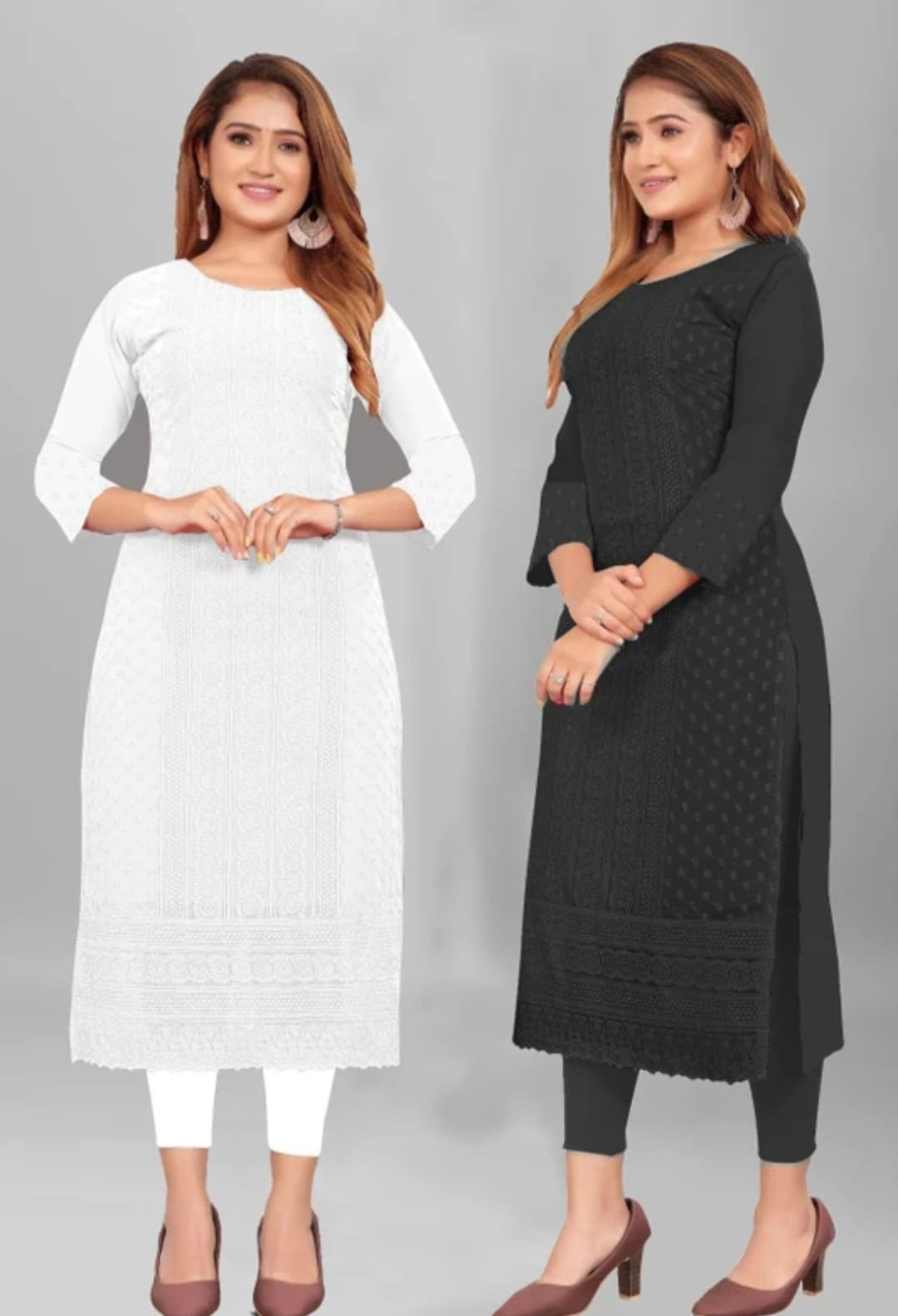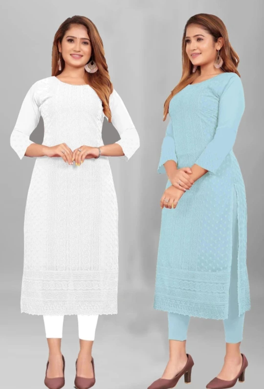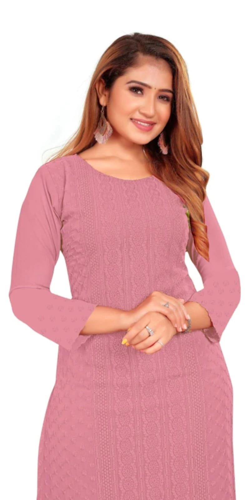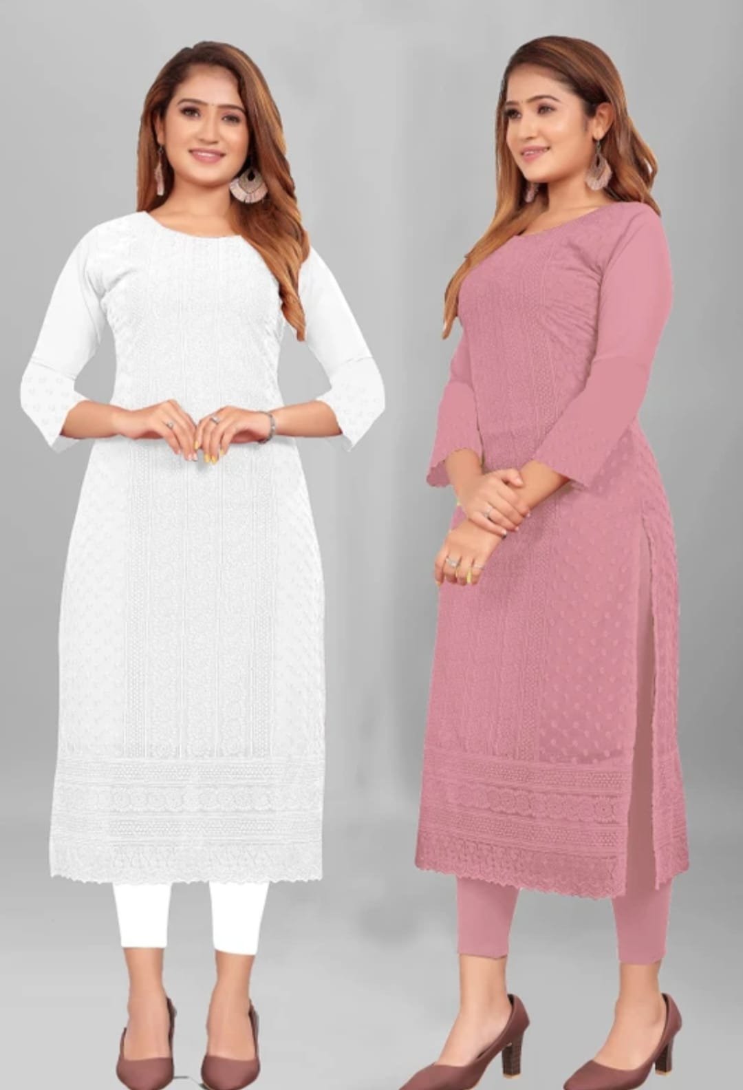 Be the first to review “Women Chikan Embroidery Georgette Straight Kurta (Pink, White)”